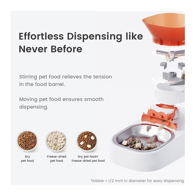 اندازه هر وعده: قابل تنظیم بین ۱ تا ۹ قسمت: حجم هر وعده غذایی قابل تنظیم است و کاربر میتواند میزان غذا را بین ۱ تا ۹ قسمت (هر قسمت معادل یک واحد مشخص از غذا) تعیین کند. این دقت در تنظیم اندازه وعدهها، به کنترل کالری دریافتی حیوان و حفظ سلامت او کمک شایانی مینماید.